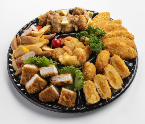 ,6名様で分けていただける数が入っています。5,6名様のパーティの場合は5〜6人前のオードブルを2〜3台を目安にご注文ください。