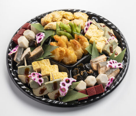 5,6名様で分けていただける数が入っています。5,6名様のパーティの場合は5〜6人前のオードブルを2〜3台を目安にご注文ください。