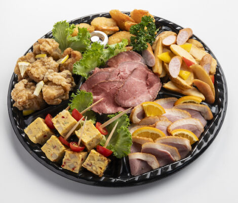 5,6名様で分けていただける数が入っています。5,6名様のパーティの場合は5〜6人前のオードブルを2〜3台を目安にご注文ください。